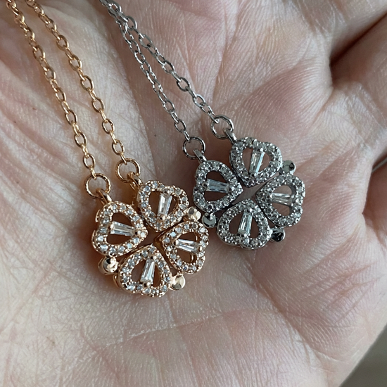 The Lucky Heart Necklace is designed to capture attention gently—with warmth, meaning, and timeless elegance. Featuring a graceful double-heart pendant—one polished, one sparkling—this refined piece symbolizes connection, affection, and the beauty of small moments that bring us luck.